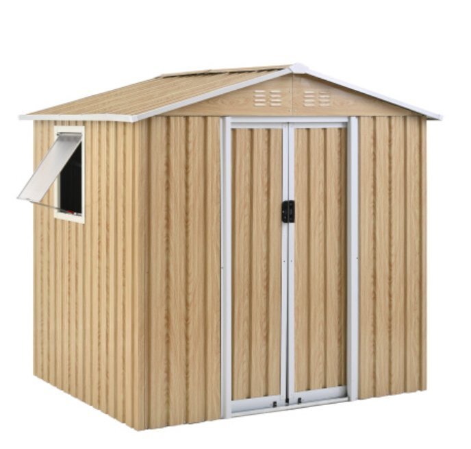 - 【可動棚&すべり出し窓付き】物置 屋外 スチール 倉庫 床材補強フレーム付き 戸外収納庫 W194cm*D162cm*H184cm 物置き 黄色です
