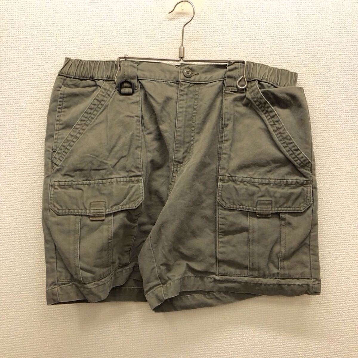 - 【GH168】Columbia W34 L7 カーゴハーフパンツ カーキ ウエスト両サイドゴム メンズブランド古着 コロンビア ショートパンツ 送料無料