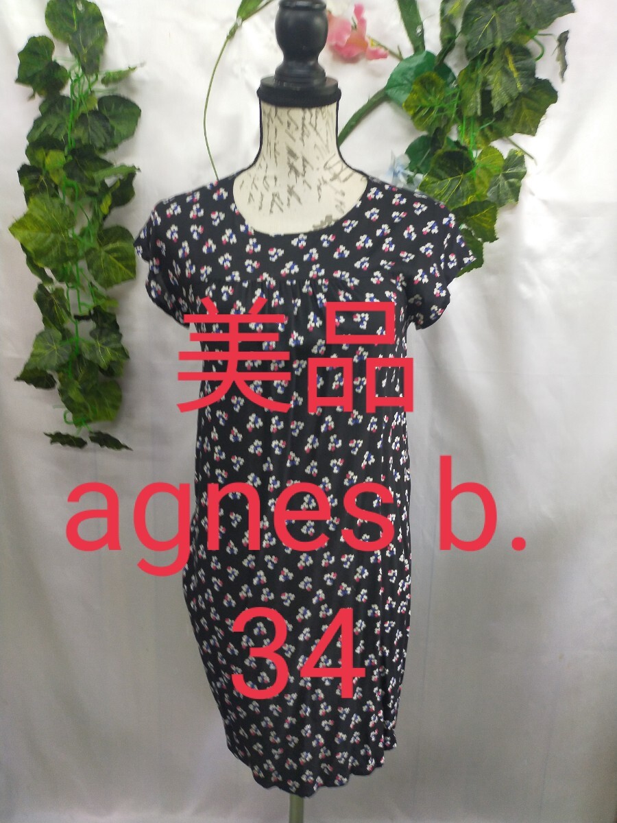 - 美品 アニエスベー ワンピース 34 プリント XS SS agnes b.