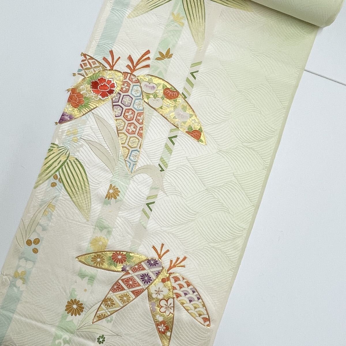 - ◆反司◆sa4419 正絹 反物 付下げ 着尺 羽尺 呉服屋 未仕立て 新品 生地 反物 ハンドメイド 刺繍 地模様 竹