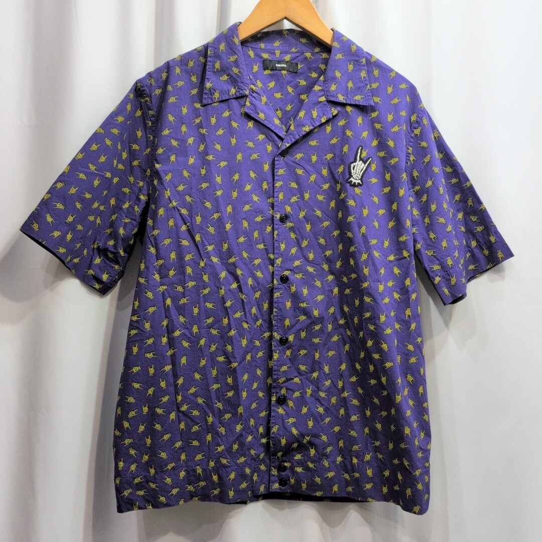 > DIESEL ディーゼル 総柄 オープンカラー 半袖シャツ L相当 メンズ コットン100% 紫色 パープル ワークシャツ
