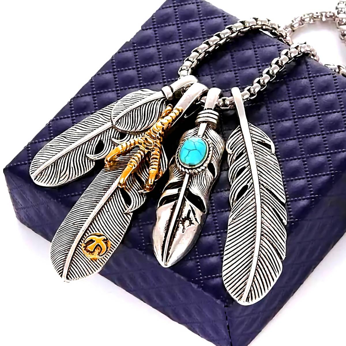 - 新品★送料無料★大物ブルーターコイズ フェザートルコ石プラチナ仕上925シルバーネックレス 誕生日プレゼント旅行夏海ギフト国内発送