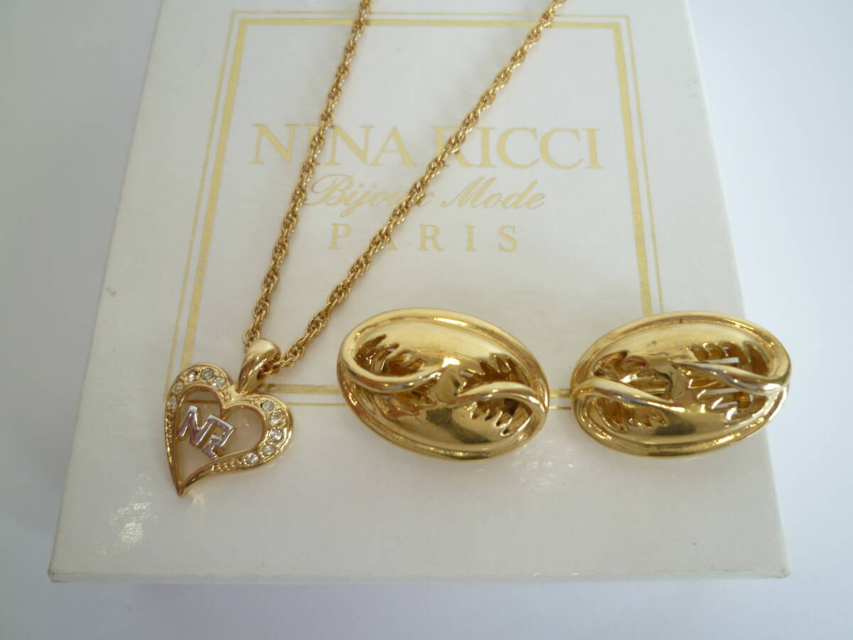 - 67136◆アクセサリー 2点セット NINA RICH/ニナリッチ ネックレス イヤリング ゴールドカラー/金色 装飾品 ハート ラインストーン ロゴ◆