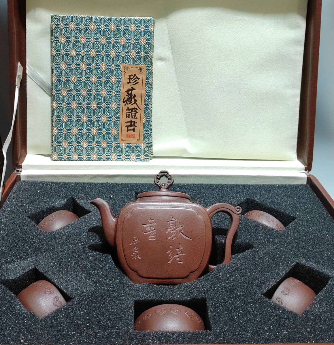 - 蔵友旧蔵出 紫砂壺 梵音套壺 顧景舟款 原礦老紫泥 帶茶杯 盒付 茶道品 煎茶道具 文房賞物 希少珍品 中国古玩 中国古美術品