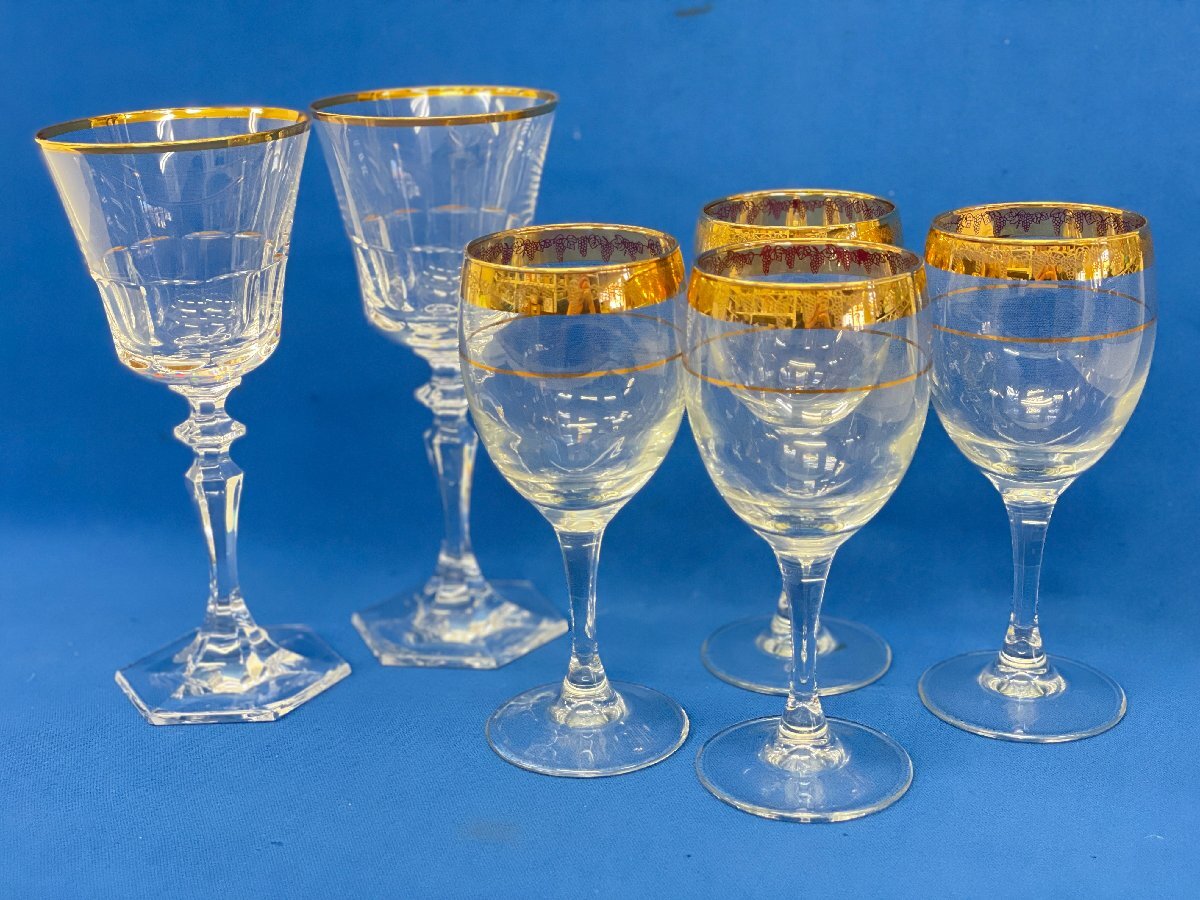 - フランス ワイングラス ガラス製 4客 金彩 葡萄図 高さ14.3cm /カガミクリスタル ペア ワイングラス まとめて