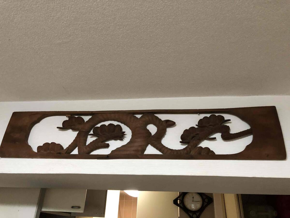 - 【木彫り欄間】松図 彫刻 古民家 建具 和風インテリア 店舗装飾 レトロ 松の木 透かし彫り 和室 和モダン 縁起物 アンティーク インテリア