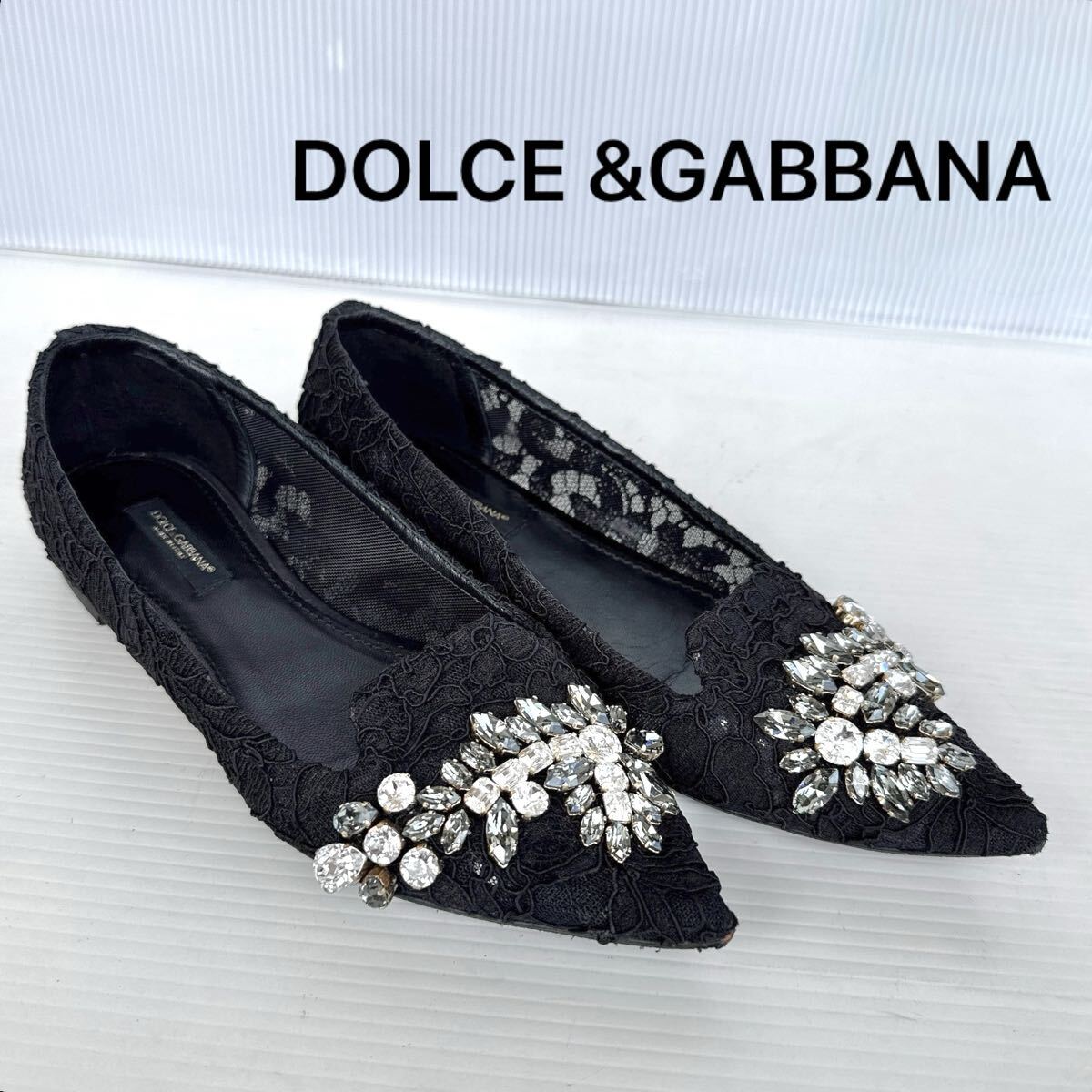 - DOLCE&GABBANA D&G ドルチェアンドガッバーナ ドルガバ バレリーナ ビジュー レース シューズ クリスタル パンプス 美品 35 レーディス 靴
