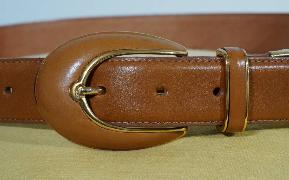 - 高級本革ベルト 茶 ブラウン ゴールド金具 メンズ レディース レザーベルト 流線型ピンバックル