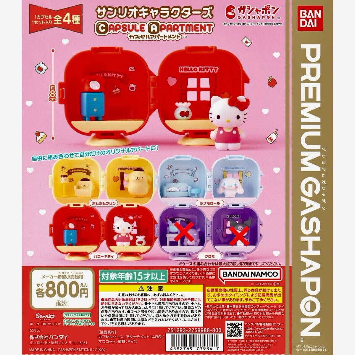 - 【新品未開封品】 ガシャポン サンリオキャラクターズ カプセルアパートメント ハローキティ、シナモロール、ポムポムプリンの3種SET