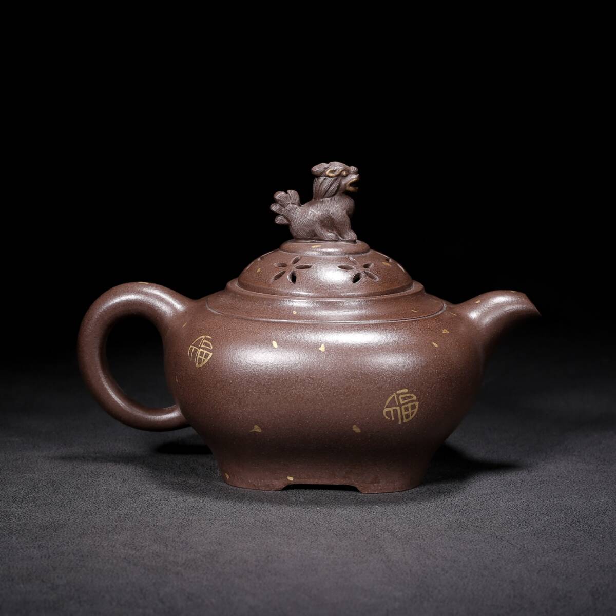 > 友人旧蔵 古原鉱紫泥製 富貴纏身壺 何道洪款 紫砂壺 精品壺 急須 煎茶道具 茶道具 極細工 古賞物 古美味 東洋彫刻 時代物 骨董 中国古美術