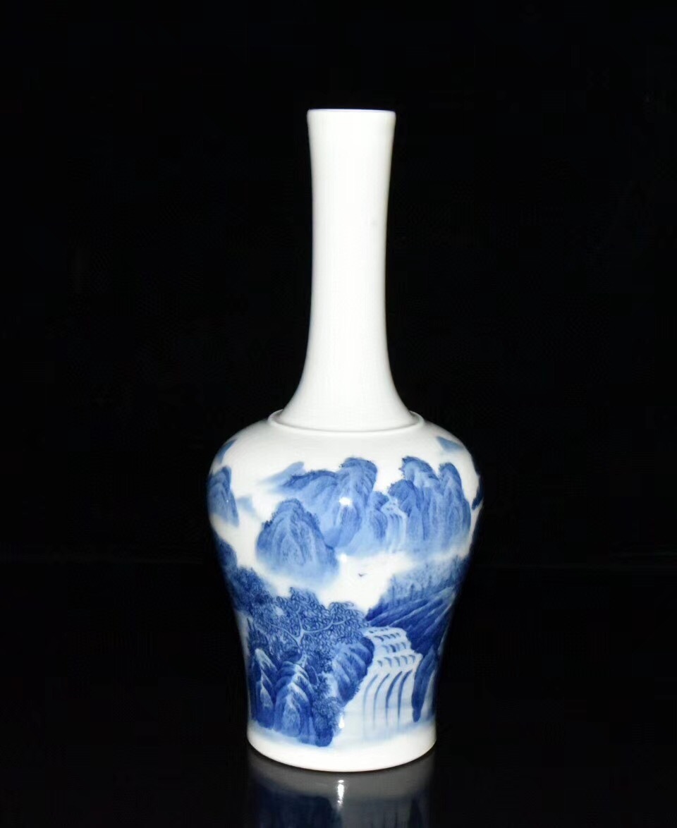 - 蔵友旧蔵出 清 乾隆年製款 青花 山水紋 搖鈴瓶 稀少珍品 貴重品 古陶瓷品 置物 古賞物 中国古玩 中国古美術品