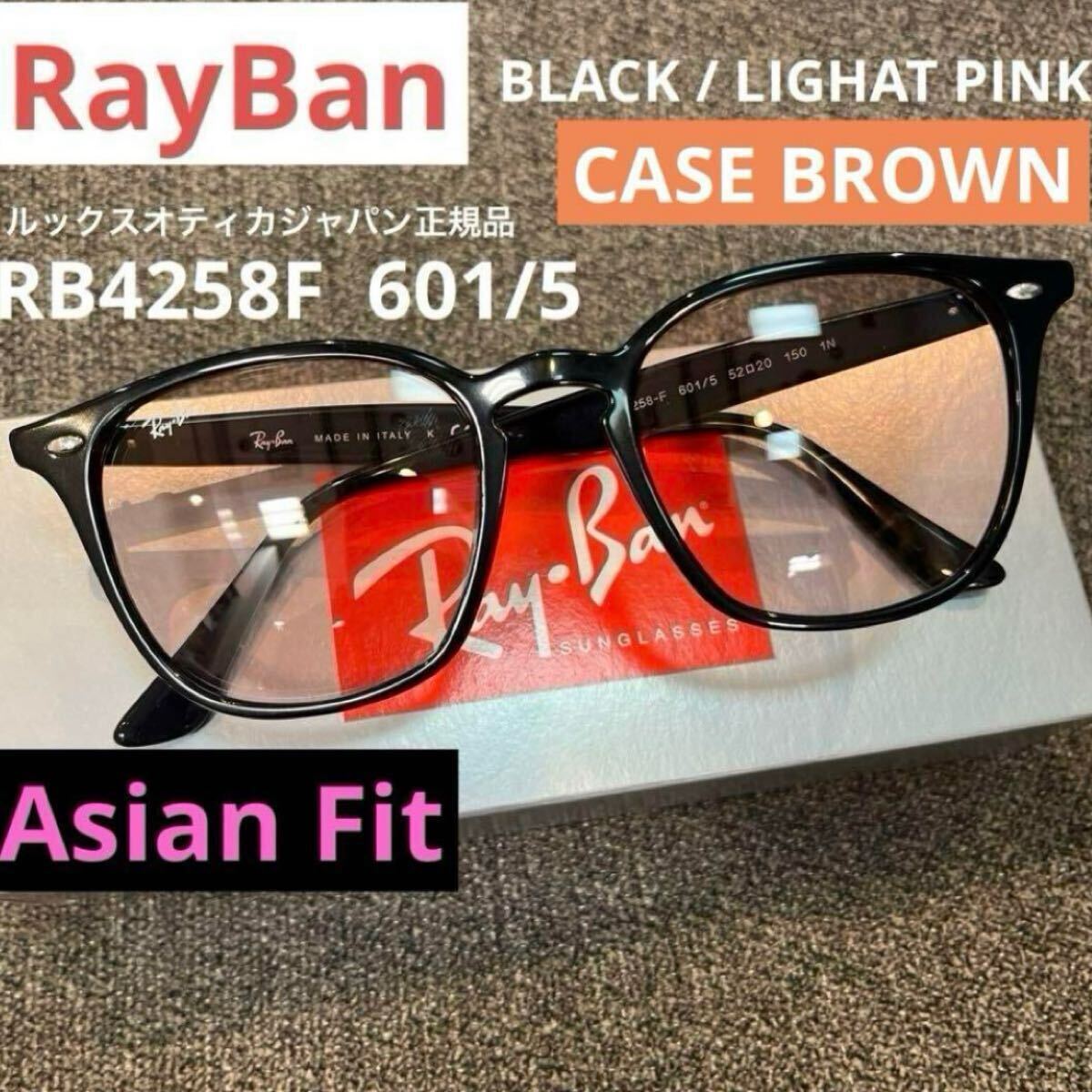 - 即決即発送!RayBan レイバン RB4258F 601/5 52 ブラック/ライトピンク正規品 アジアフィット ルックスオティカジャパン正規 ケース茶
