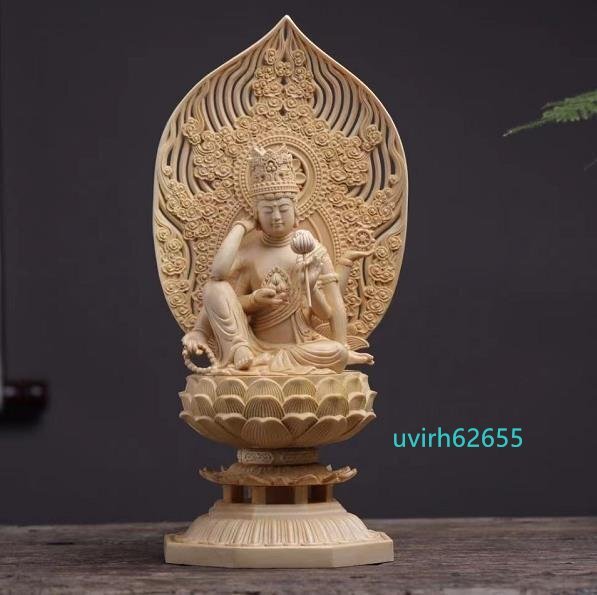 - 極上品★ 最新作 木彫 如意輪観音像 檜木 高約30cm