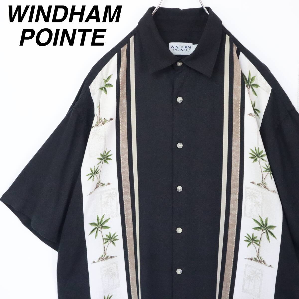 - 【キューバシャツ】レーヨンシャツ 総柄シャツ アロハシャツ ヤシの木 Lサイズ