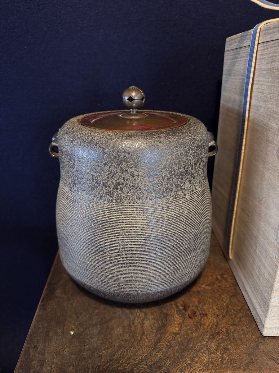 - 釜師 佐藤旺光 作 筋目三瓢釜 瓢箪釜 共箱 茶道具 茶釜 鉄釜 風炉釜 古美術 骨董 コレクション 鉄瓶
