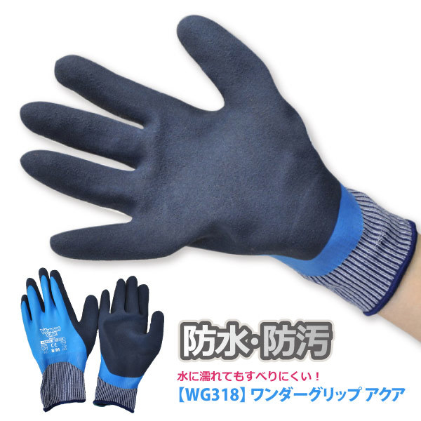 - ユニワールド【WG318】 WONDER GRIP(ワンダーグリップ)アクア(XLサイズ)天然ゴムコーティング+強グリップ手袋 ≪ネコポスの場合2双まで可