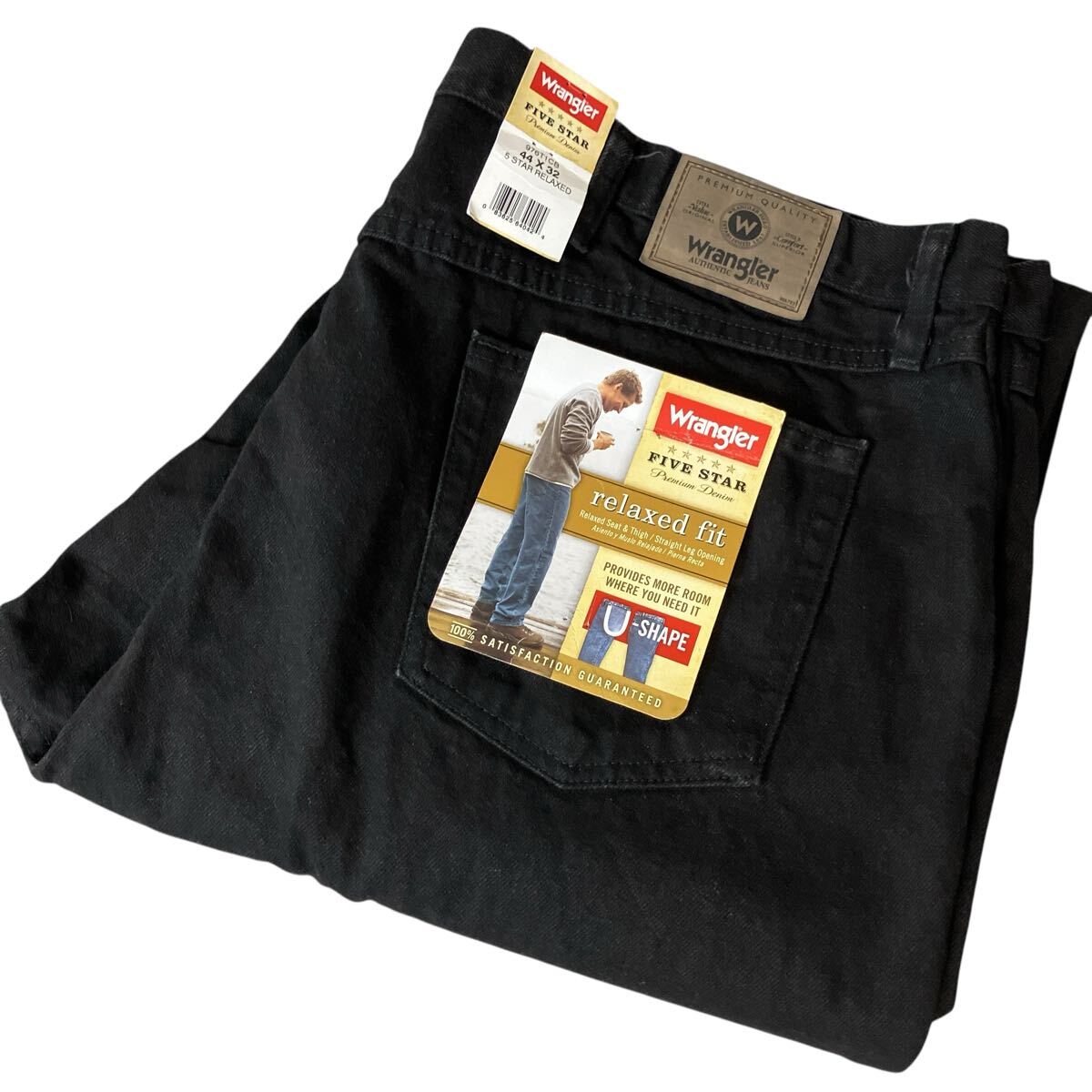 - タグ付き wrangelr ラングラー 00s バギーデニム ブラックデニム ジーンズ ジーパン 黒ブラック 色褪せフェード ビッグシルエット W44