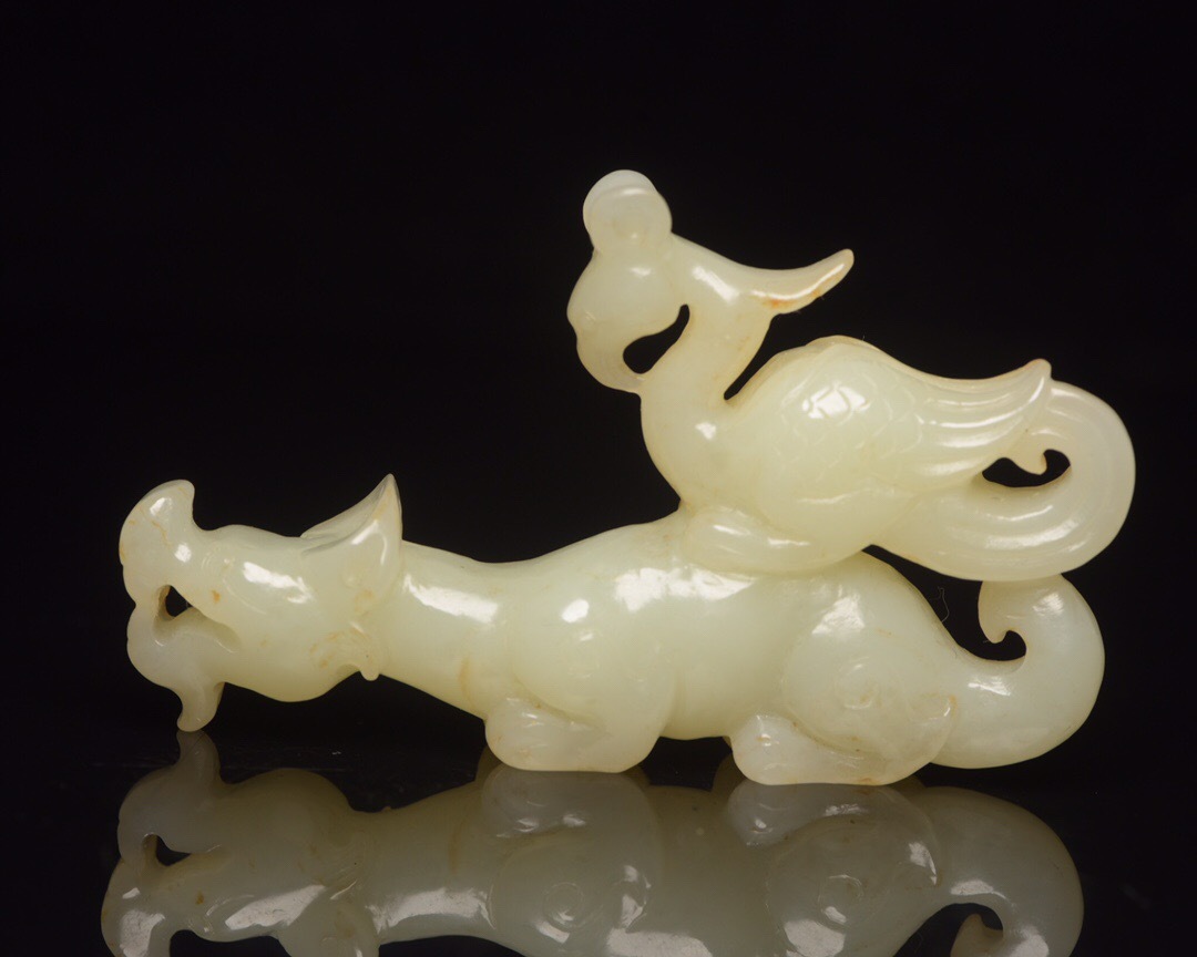- 『館蔵珍品 和田玉製 細密彫 鳳鳥 置物 賞物』稀少珍蔵品 古賞物 貴重物品 収蔵品 中国古美術 時代物 古董品