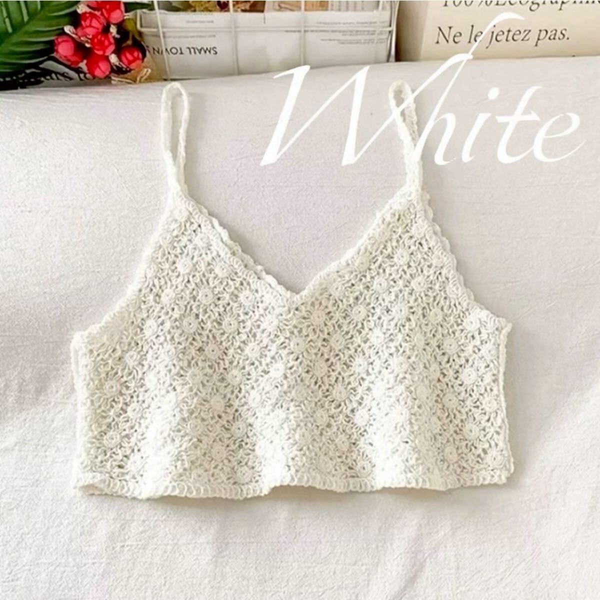 - かぎ編み ビスチェ キャミソール ショート丈 ニットベスト オシャレ ホワイト