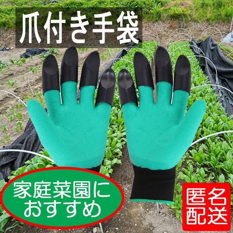 - 爪付き 手袋 家庭菜園 園芸 植栽 グローブ ガーデニング ガーデン 草取り 植え替え 畑 農作業 野菜 種まき 畝 穴掘 ツメ ゴム 緑 匿名配送