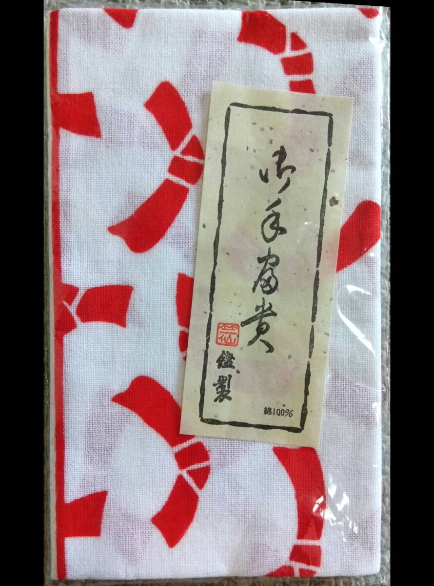 - 竺仙鑑製*手拭い*結び文*赤色*綿100%*てぬぐい*手ぬぐい*リボン