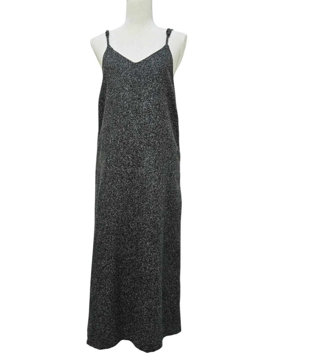 - レディースワンピース キャミソールワンピース ロングワンピース スリット入り 黒 M サイズ