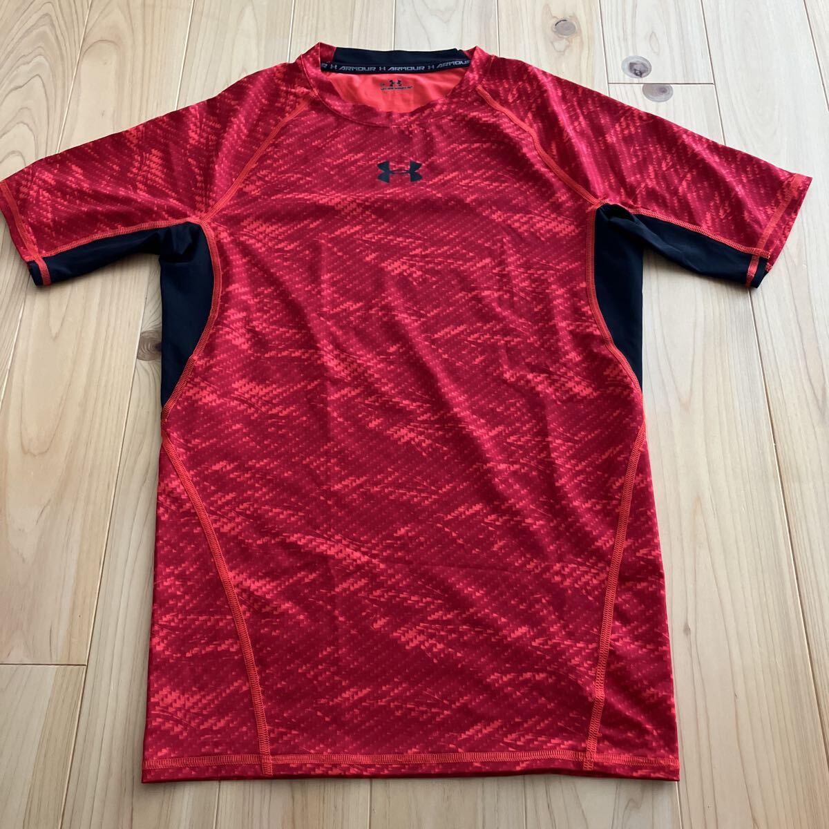 > UNDER ARMOUR 半袖シャツ LG 赤 ヒートギア コンプレッション s/s ショートスリーブ インナー L 丸首 アンダー Tシャツ 総柄