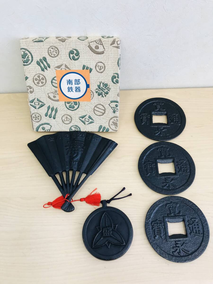 - 1円~ 寛永通貨 栓抜き 本場南部鉄器 岩鋳 工場見学記念 校舎落成記念 鉄 センス 扇子 全て名前入り 南部鉄器おまとめ5点