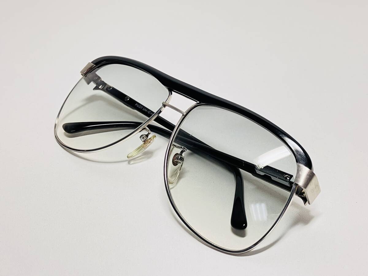 > 03◆希少 入手困難 PILOT UM-G 1104 パイロット ティアドロップ型 シルバーxブラック ビンテージ サングラス 眼鏡 度無し