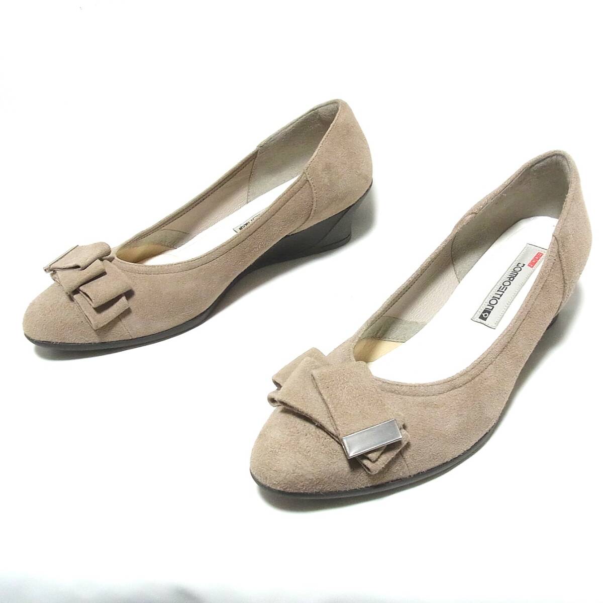 - composition9 美品 コンポジションナイン 本革 パンプス 23.0cm◎グレージュ色 レザー 3.5cm ウェッジヒール バックル