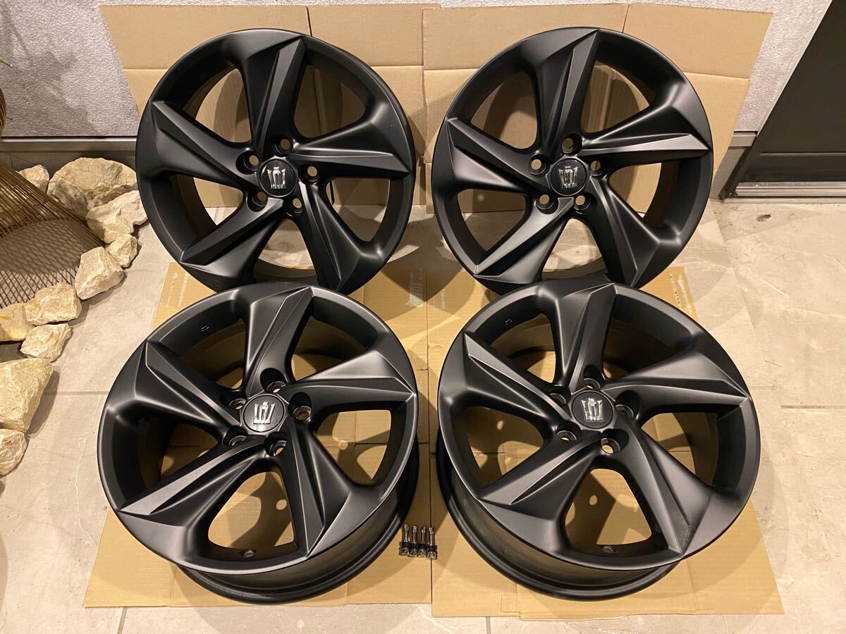 - 美品 220系クラウンRSアドバンス純正18インチアルミホイール4本 PCD114.3/5 8J+45 マットブラック塗装後未使用 センターキャップ4個新品
