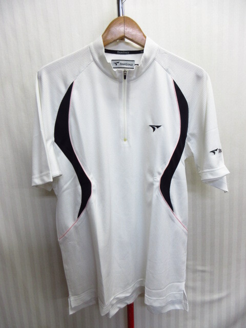 > 未使用 ツアーステージ ゴルフウエア メンズM 白シャツ モックネックウエア ハイネック仕様ゴルフシャツ 速乾スポーツシャツ 08072