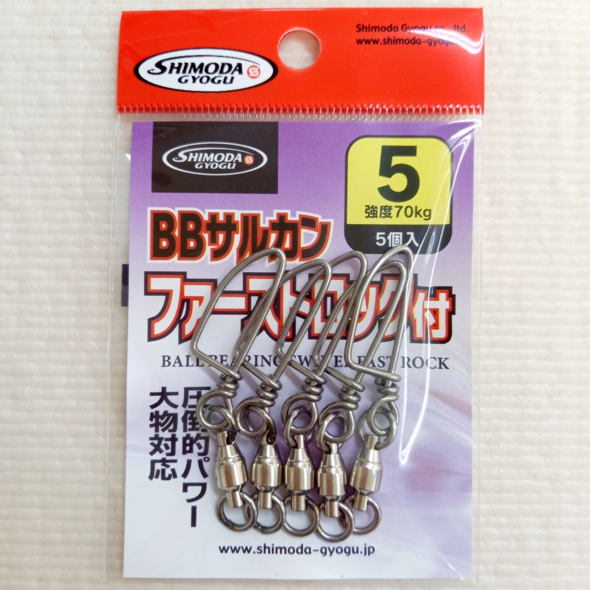 - BBサルカン・ファーストロック付 5号 5個入 スナップスイベル 下田漁具 ボールベアリング2R