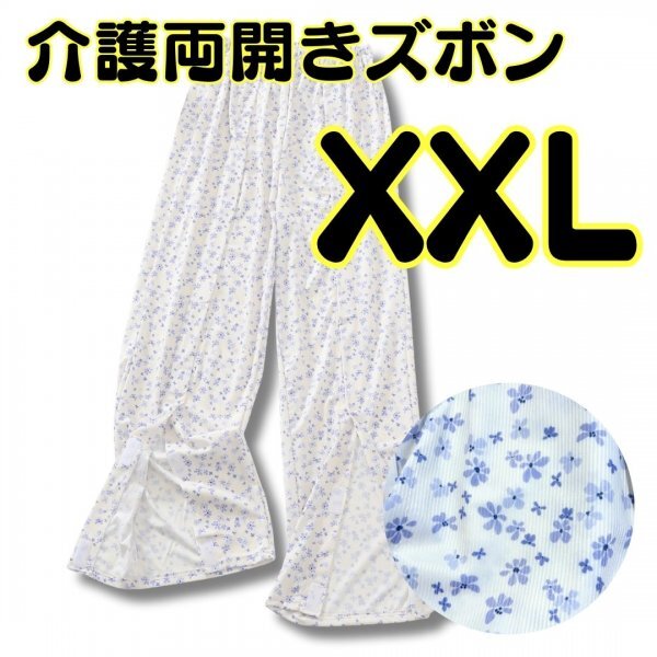 - 【介護士監修】シルク 介護パジャマ ズボン 長袖 フルオープン着替え 花柄 通年用 花柄 入院 点滴 術後 授乳 身体検査 XXLサイズ