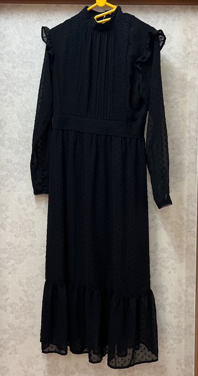 > ★SLY★スライ ワンピース 長袖 M 黒ブラック ロング丈 ドレス シースルー レース 披露宴 二次会にも 裏地付き ポリエステル100%