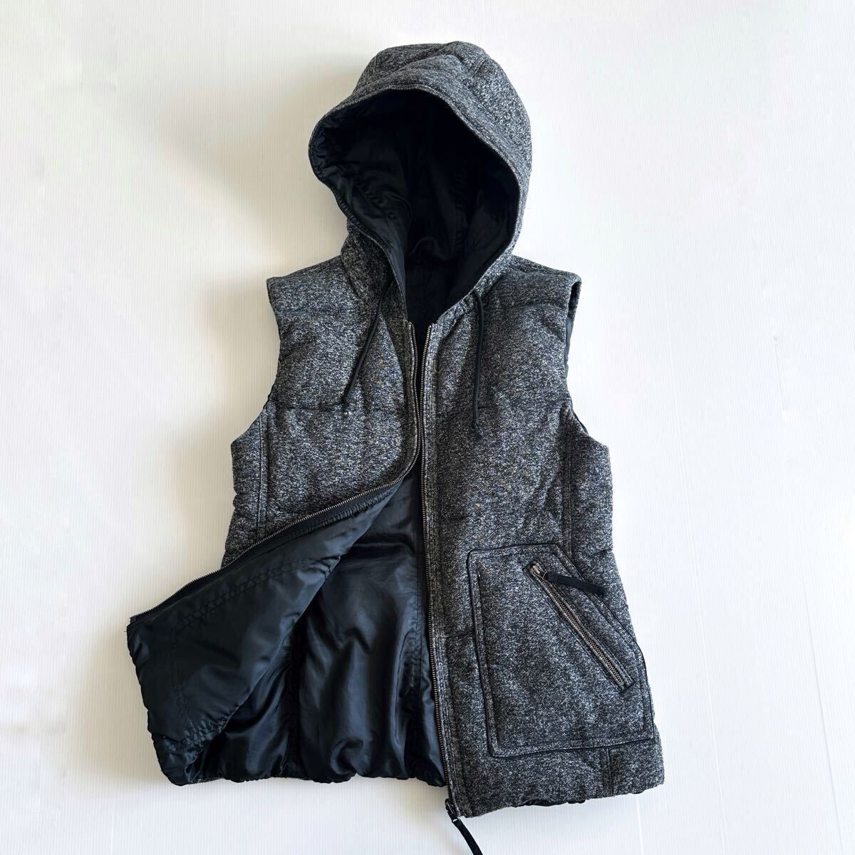 - ★ 【リバーシブル 】PLST プラステ /フード ダウンベスト M 杢 グレー 黒 暖かい Mサイズ ダウン フェザー