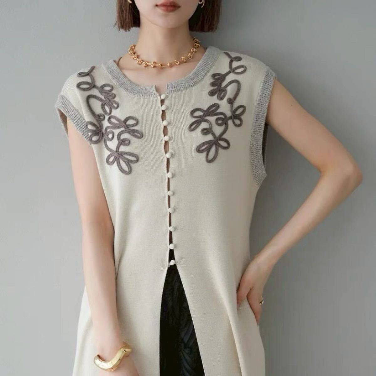 - 新品!フロントスリットコード刺繍ニットワンピース ベージュ Lumier リュミエ
