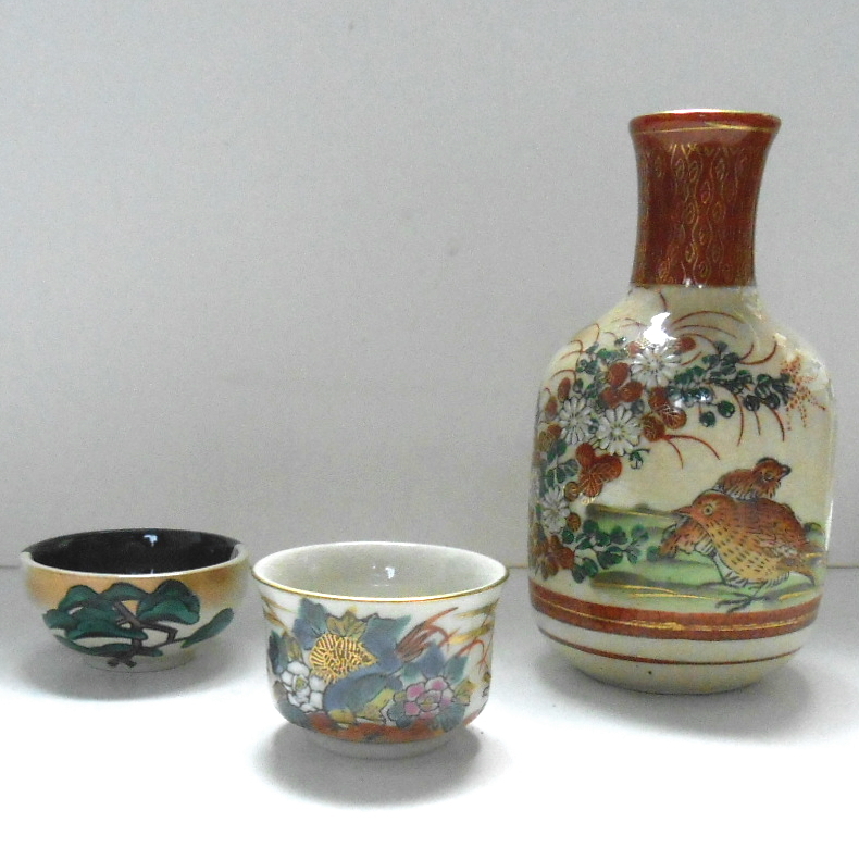 - 九谷焼★暁岳 徳利 花鳥文様 庄三 祥隆 盃 花鳥文様 松文様 2種セット