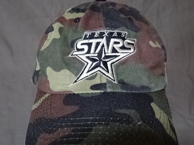 > 激レア USA購入 NHL 北米アイスホッケー 傘下 AHL アメリカン ホッケーリーグ【TEAXS STARS】ロゴ刺繍入り カモフラ柄 キャップ 中古良品