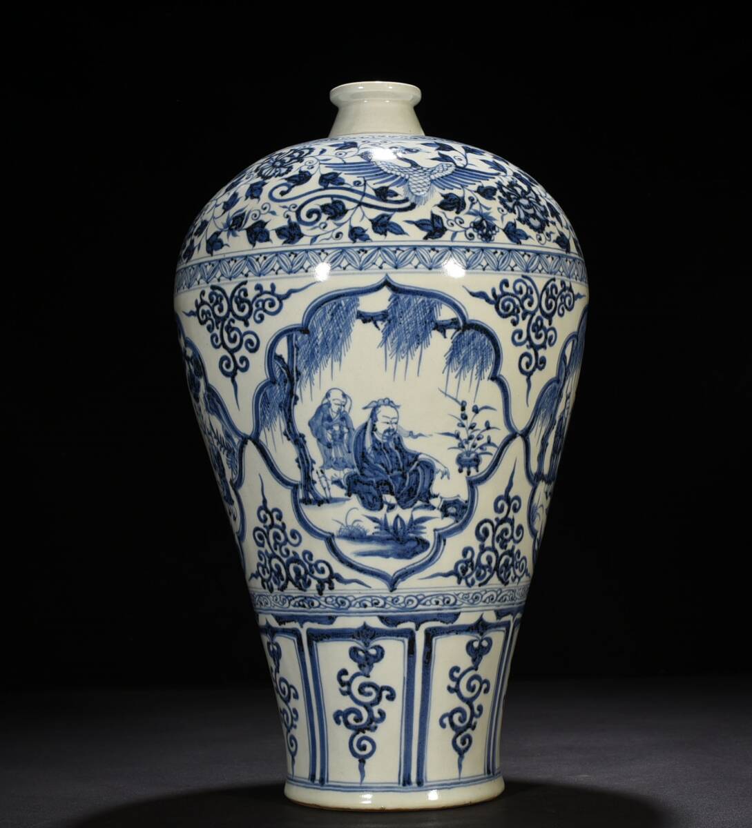 - 元時代 青花 四愛人物紋 梅瓶 陶磁器 中国美術 高さ44 cm 幅25 cm 骨董品 唐物 819