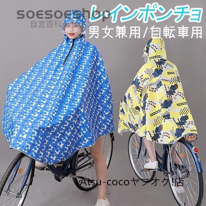 - レインポンチョ カッパ 自転車用 ポンチョ バイク用 レインコート レディース メンズ 雨合羽 雨具 リュック対応 ☆19色選択/1点