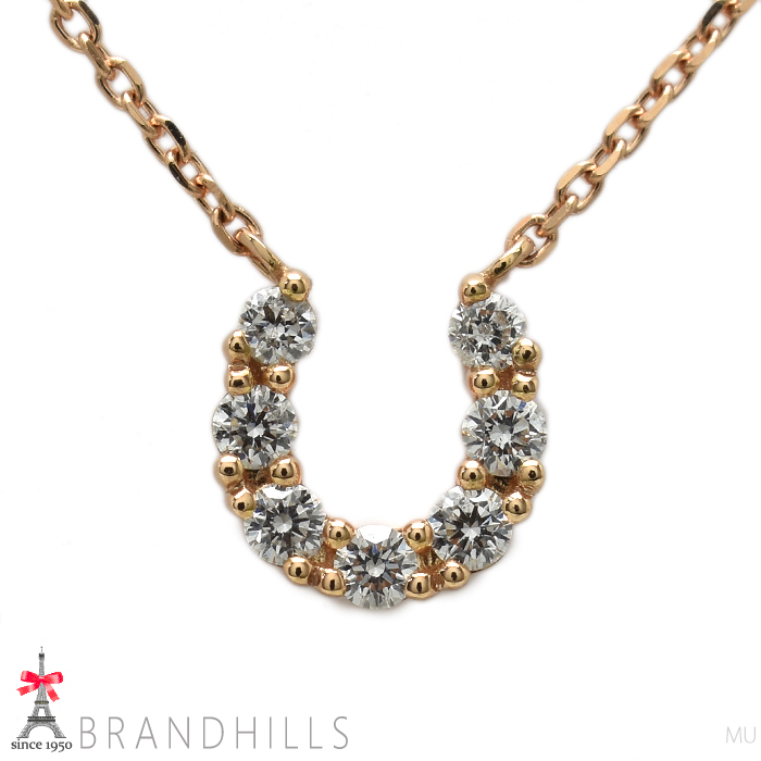 - 4℃ ヨンドシー ダイヤモンド ネックレス ホースシュー K18金 750PG ピンクゴールド 馬蹄モチーフ 美品
