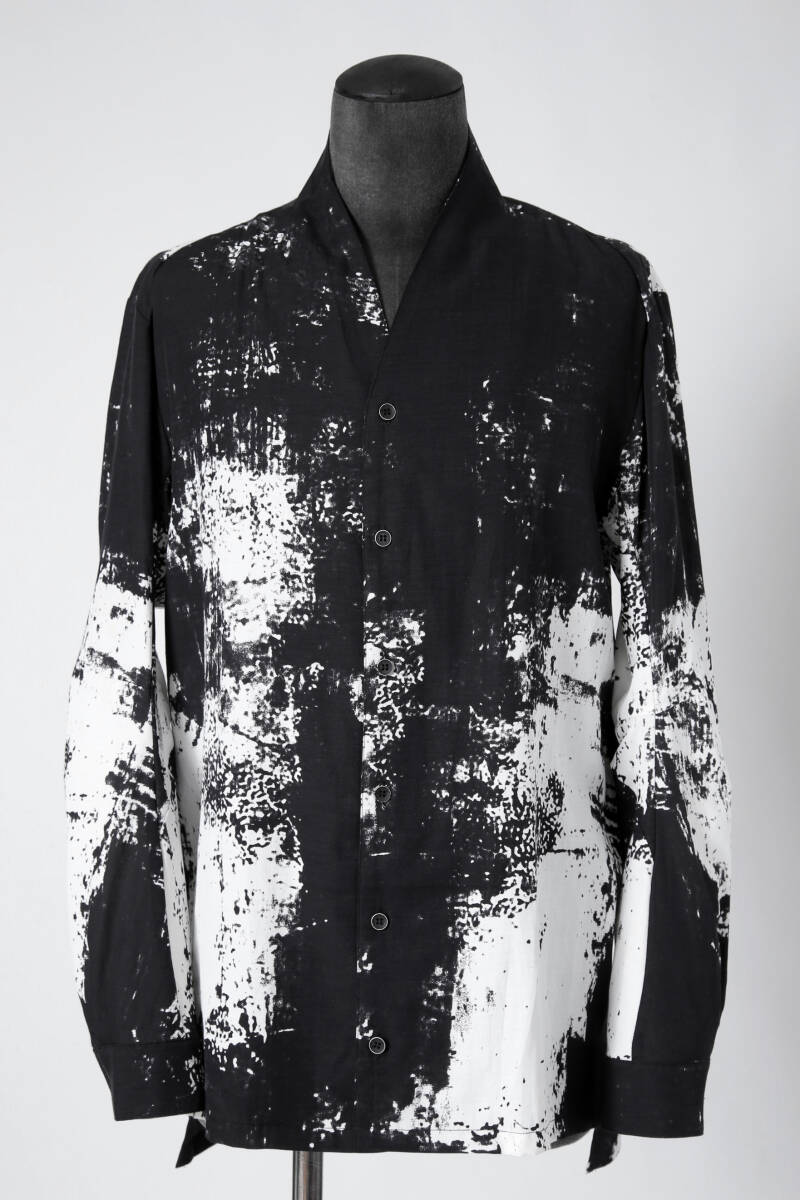> 新品 D.HYGEN ディーハイゲン/ 25SS ブラッシュプリント レーヨン×コットン×リネン / ショールカラーシャツ / size 2 (BLK x WHT)
