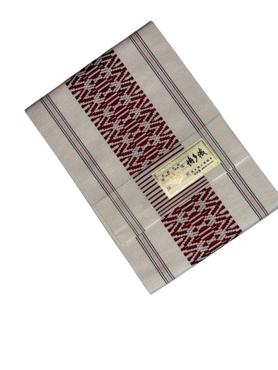 - 【新品未使用】博多織四寸半幅帯 献上柄 白赤 単衣 上品 モダン お洒落