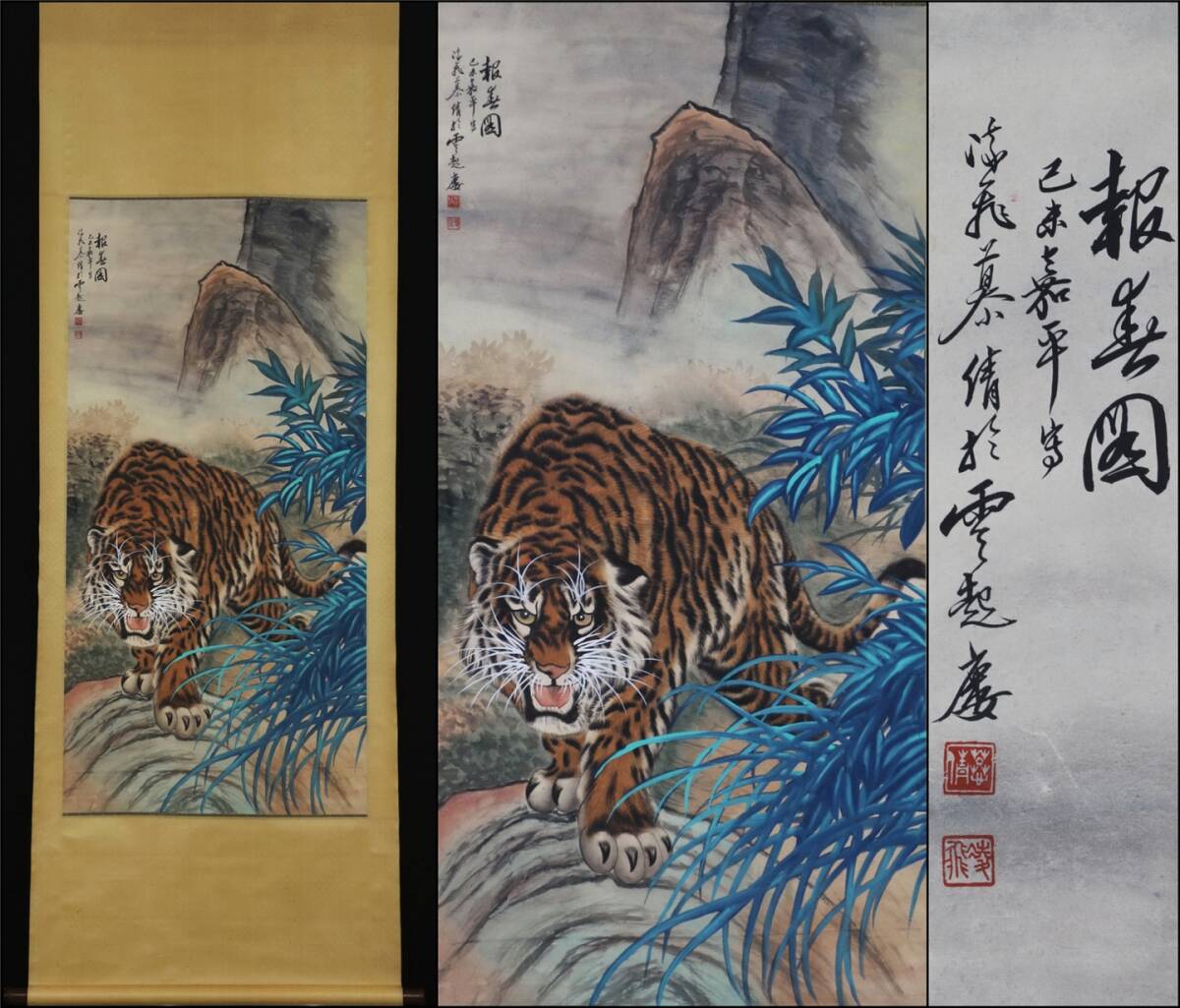 > 古美術 掛け軸 中国・近現代 「慕凌飛書」 紙本 【報春図】 立軸 書道 巻き物 肉筆保証 唐物 古画 画心132x62cm LT-250851