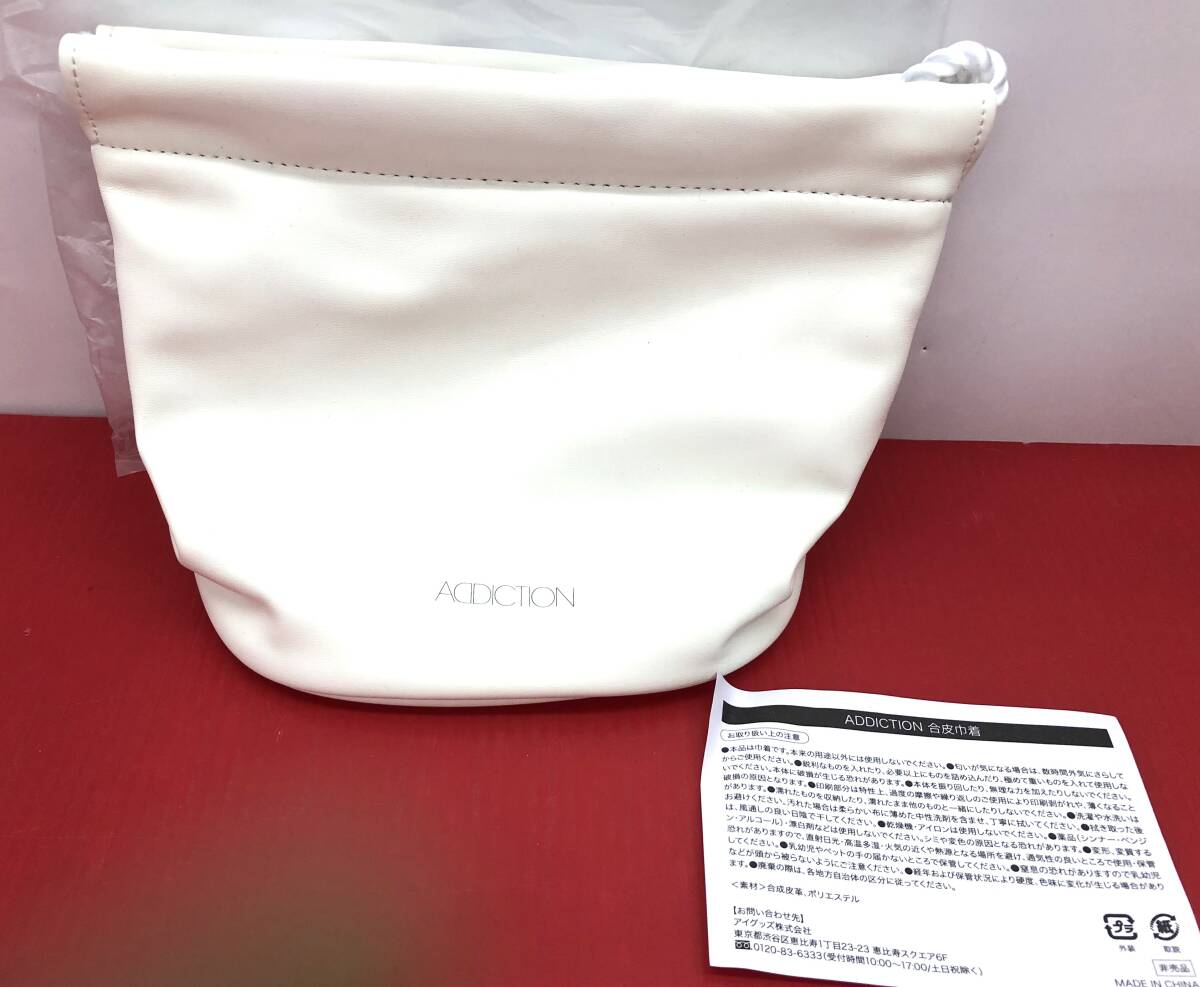 - 未使用 ADDICTION レザーポーチ 非売品 ノベルティ 合否巾着 ホワイト 25ADD 52ACAA