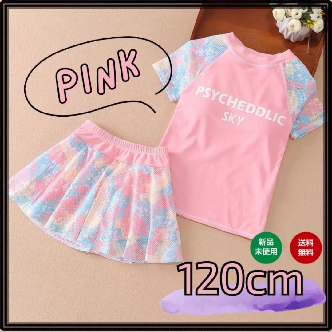 > 120cm ピンク 水着 キッズ 女の子 ラッシュガード セパレートプール 子供