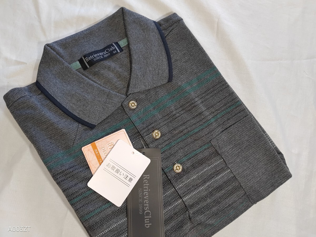- L寸・新品/アート系ジャガード長袖ポロシャツ●杢チャコール
