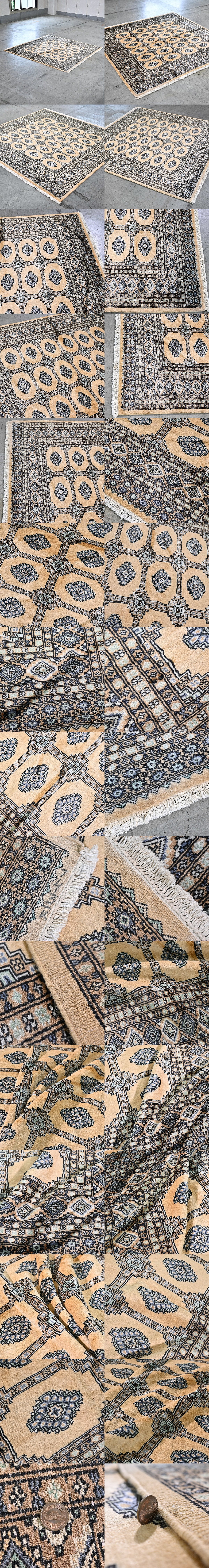 > 新品 未使用 パキスタン製 手織り ウール絨毯 ブハラ柄 ギュル文様 羊毛 手結び ハンドノット カーペット ラグ リビング 応接室 P-21