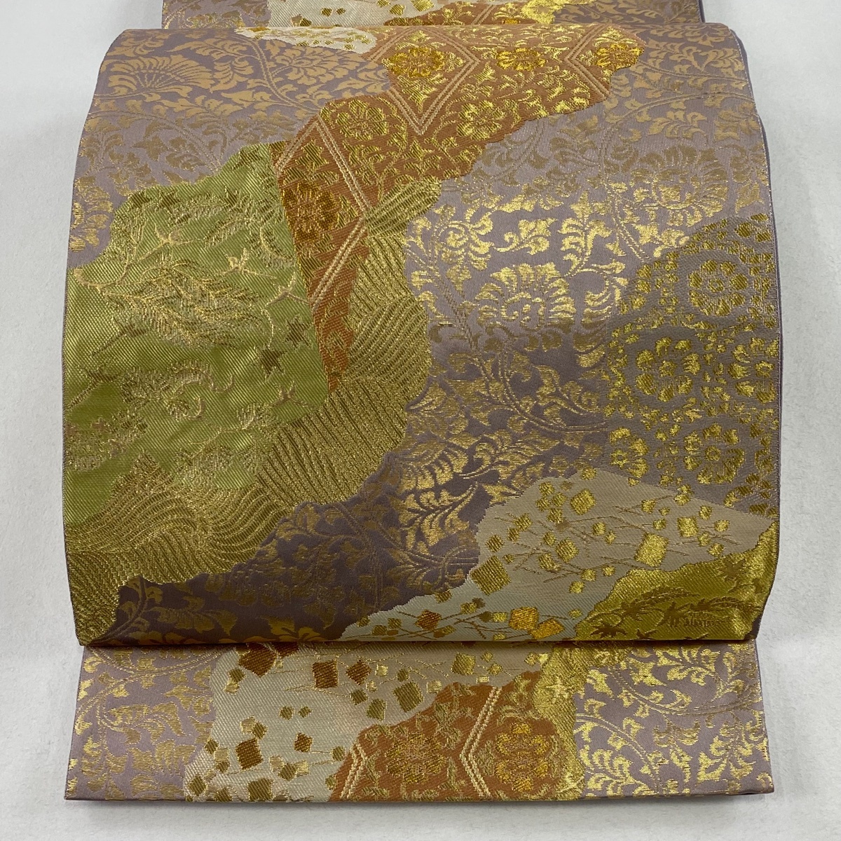 > 袋帯 秀品 落款 本家加納 道長取り 花唐草 箔 金糸 薄紫 六通 正絹 【中古】
